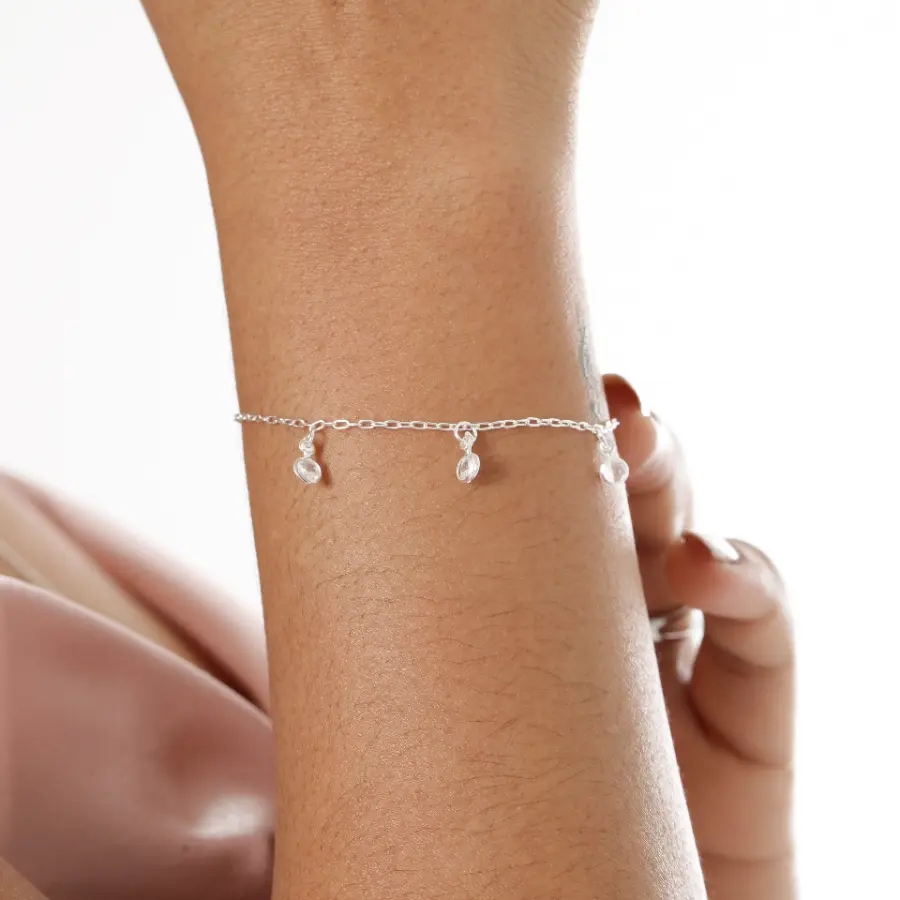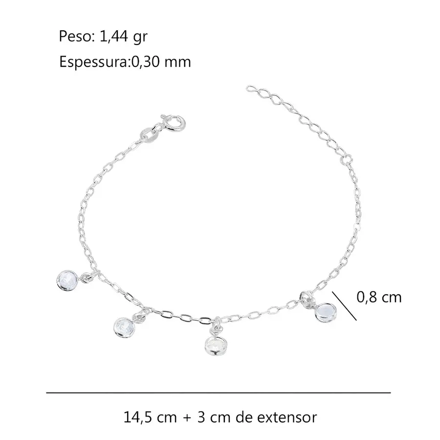 001 Pulseira Prat Zircônia Cristal + Alongador