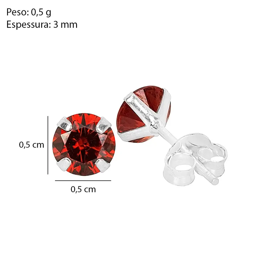 Brinco Prat Redondo com Zircônia Rubi 5mm