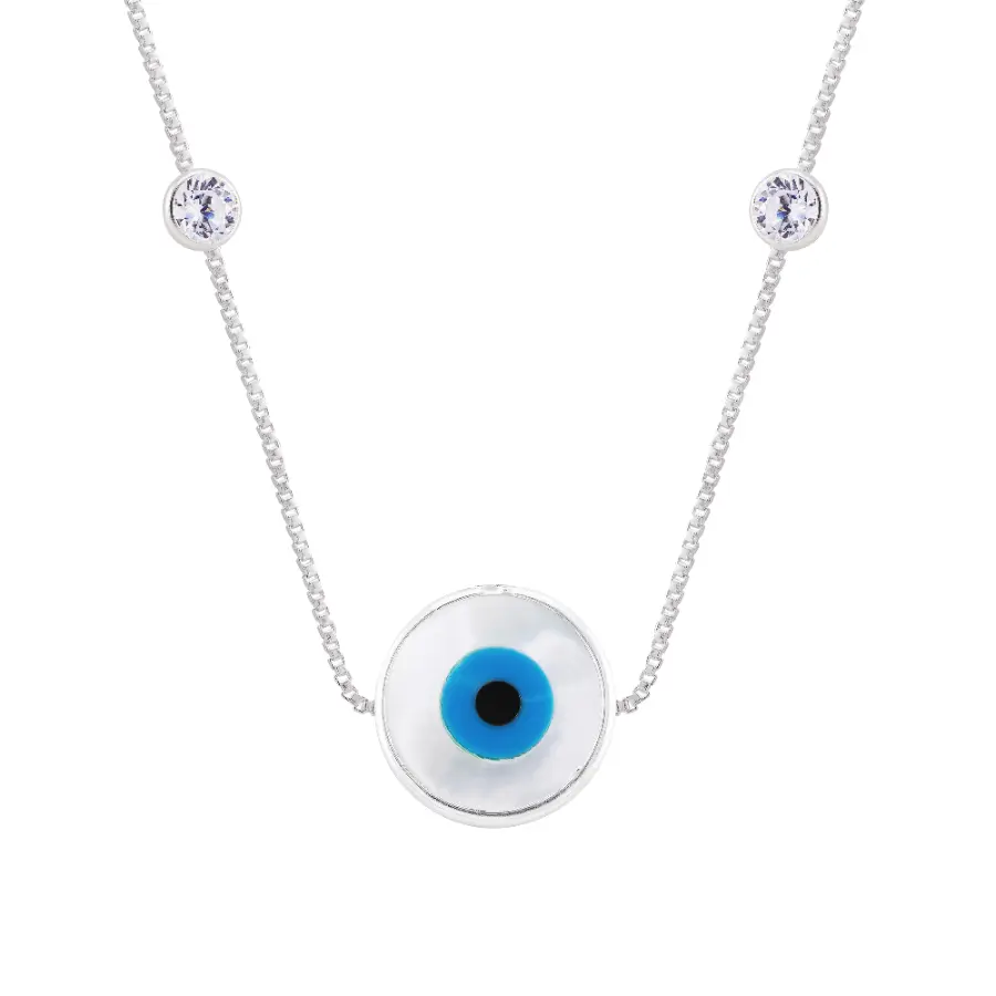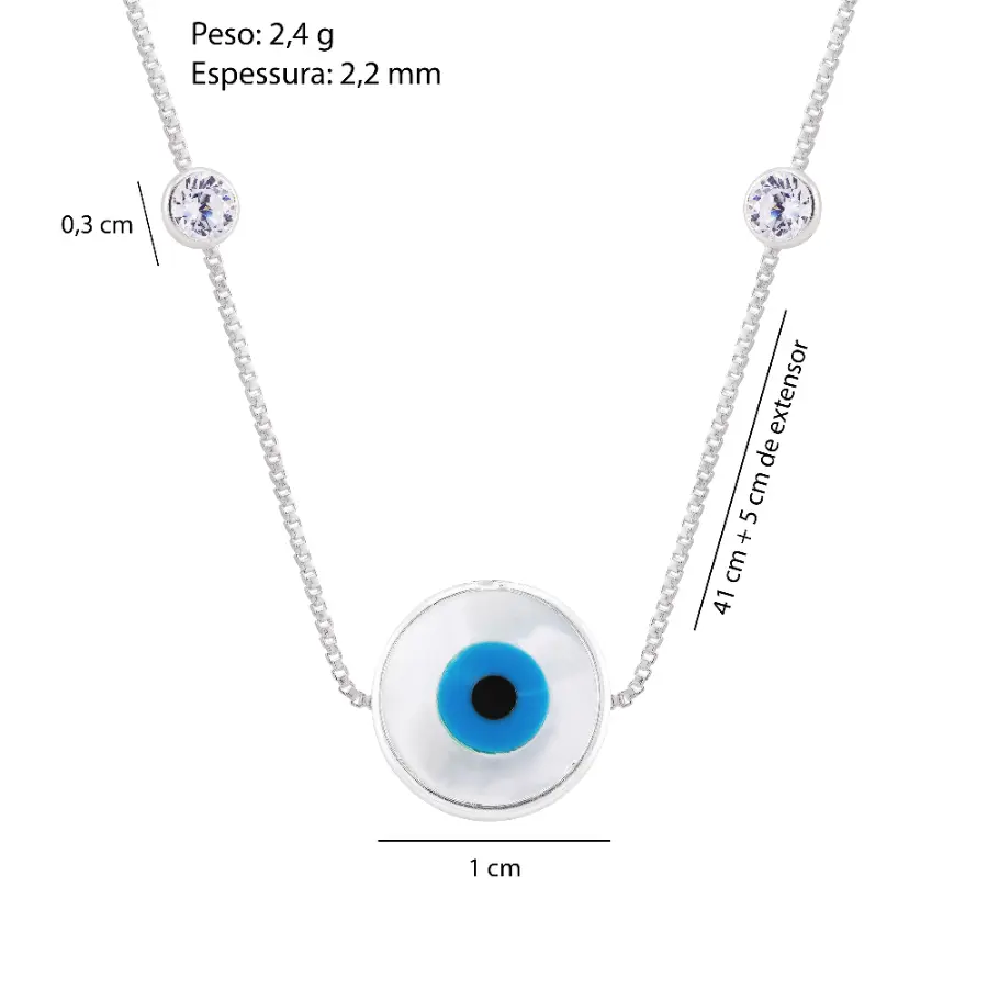 Colar Prat Olho Grego Redondo 10mm com Zircônias Cristal 3mm 41cm+5cm