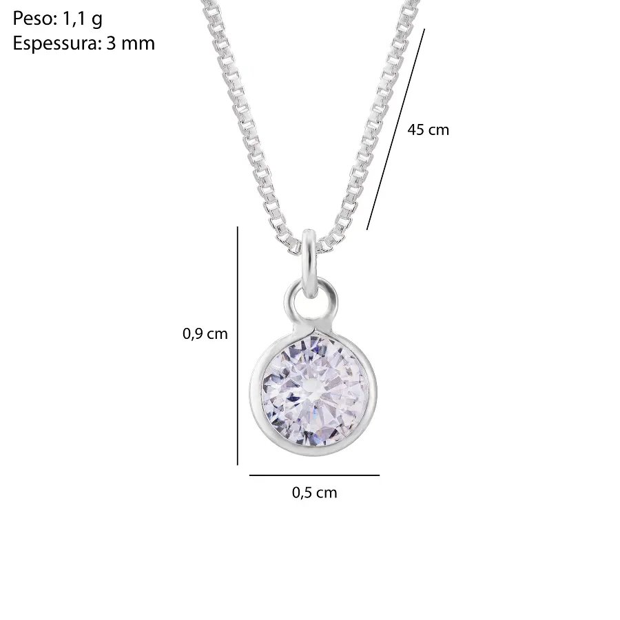 Colar Prat Ponto de Luz Redondo Cristal 5mm | Variação: Corrente: 45