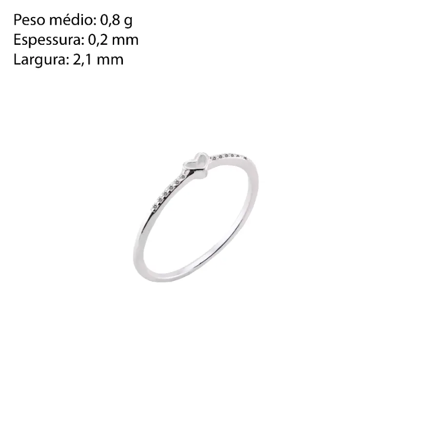 001 Anel Prat Coração Zirconia | Variação: Tamanho:19