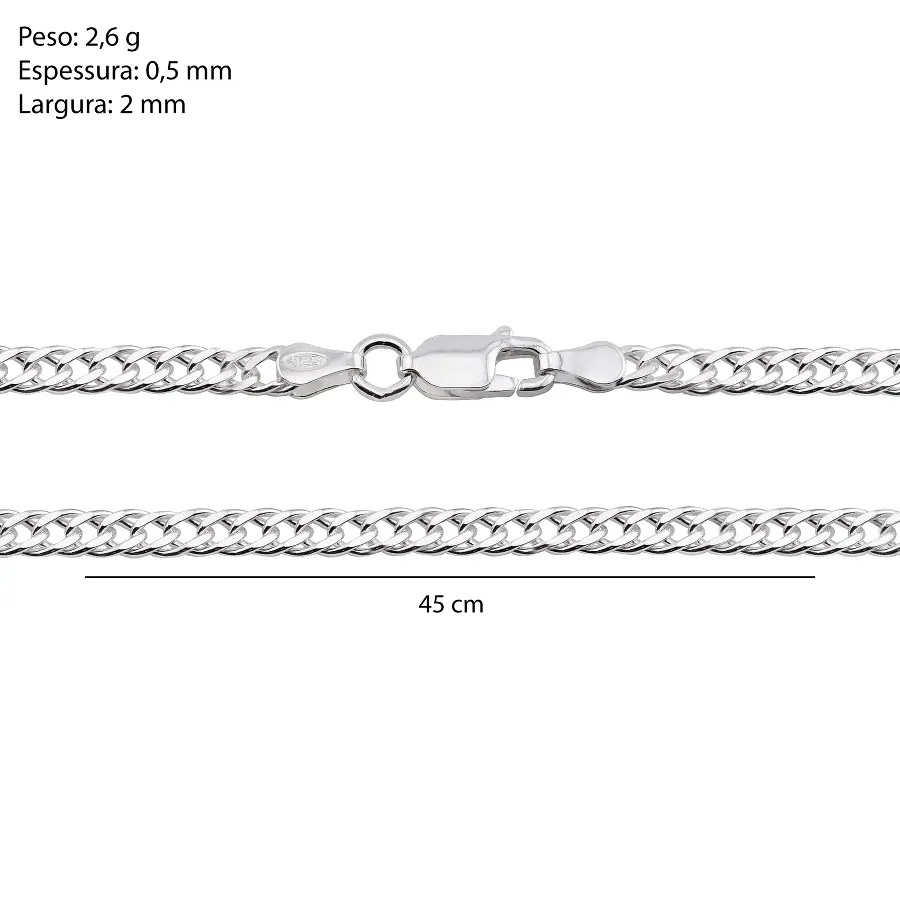 Corrente Prat Grumet Fio Duplo 2mm | Variação: Tamanho:50