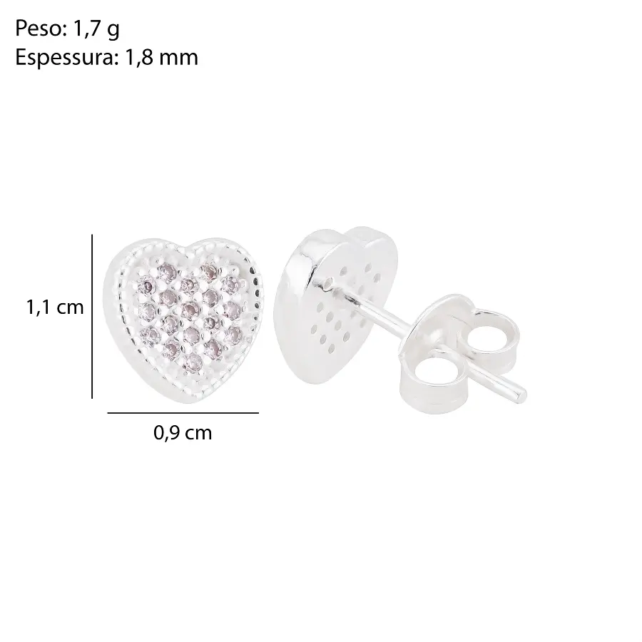 Brinco Prat Coraçao Zirconia Cristal