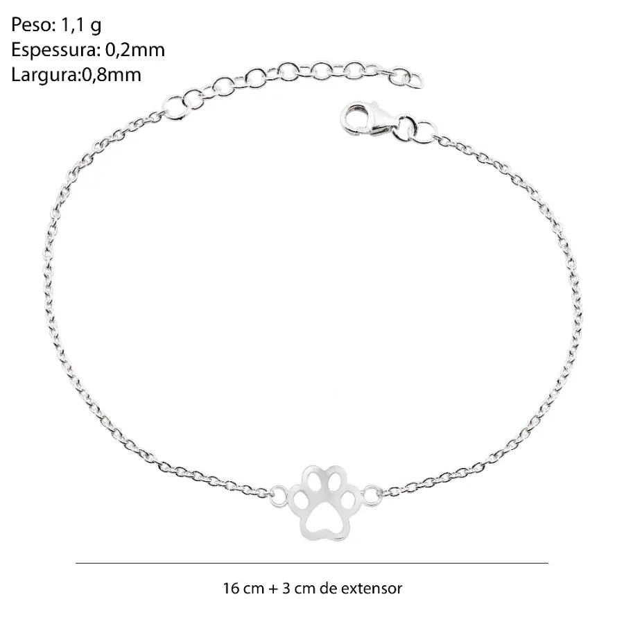Pulseira Prat Patinha de Cachorro 17cm + 3cm Extensor
