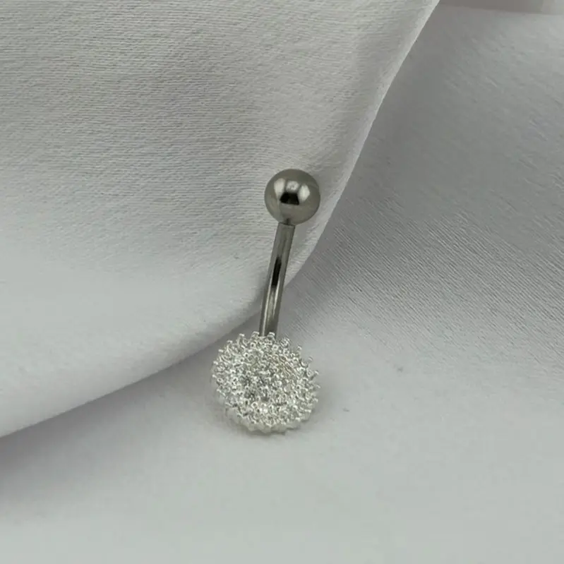 Piercing Umbigo Prata Ponto de Luz 7mm Zirconia Cristal