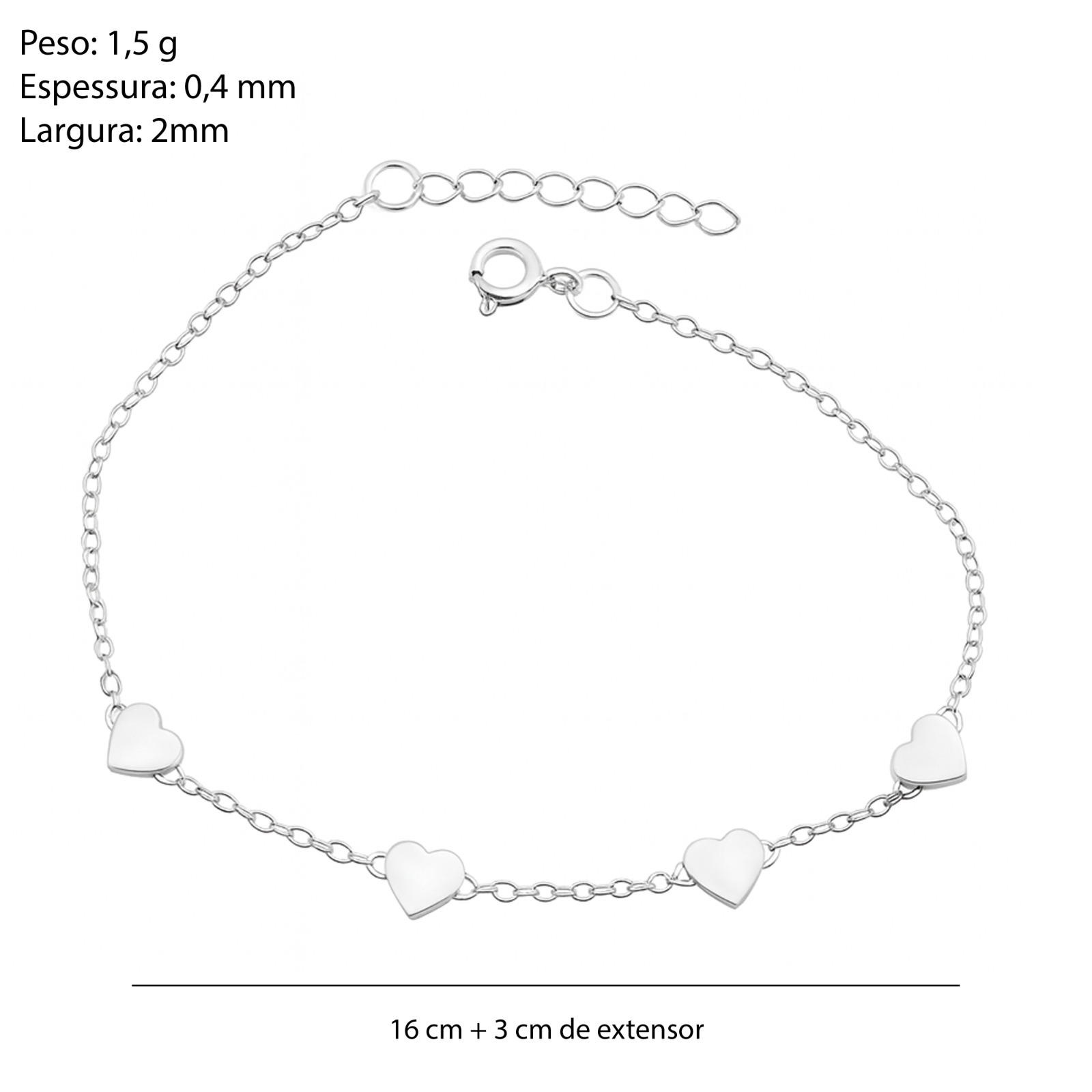 Pulseira Prat Chapinha Coração 16cm + 3cm AL