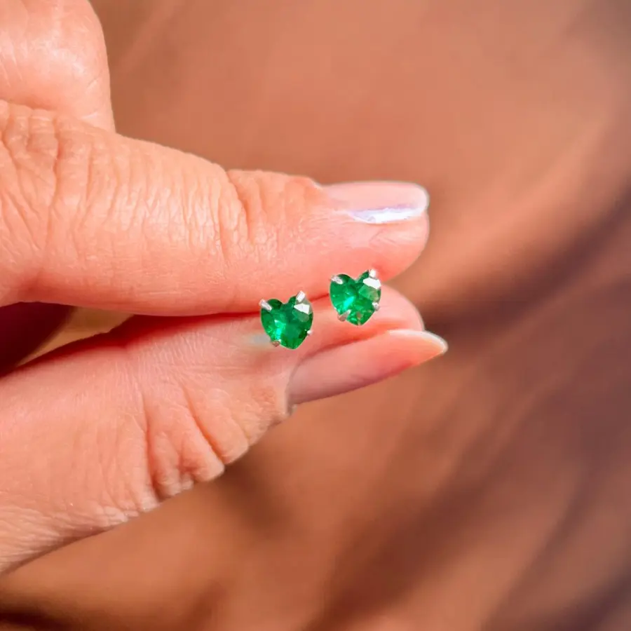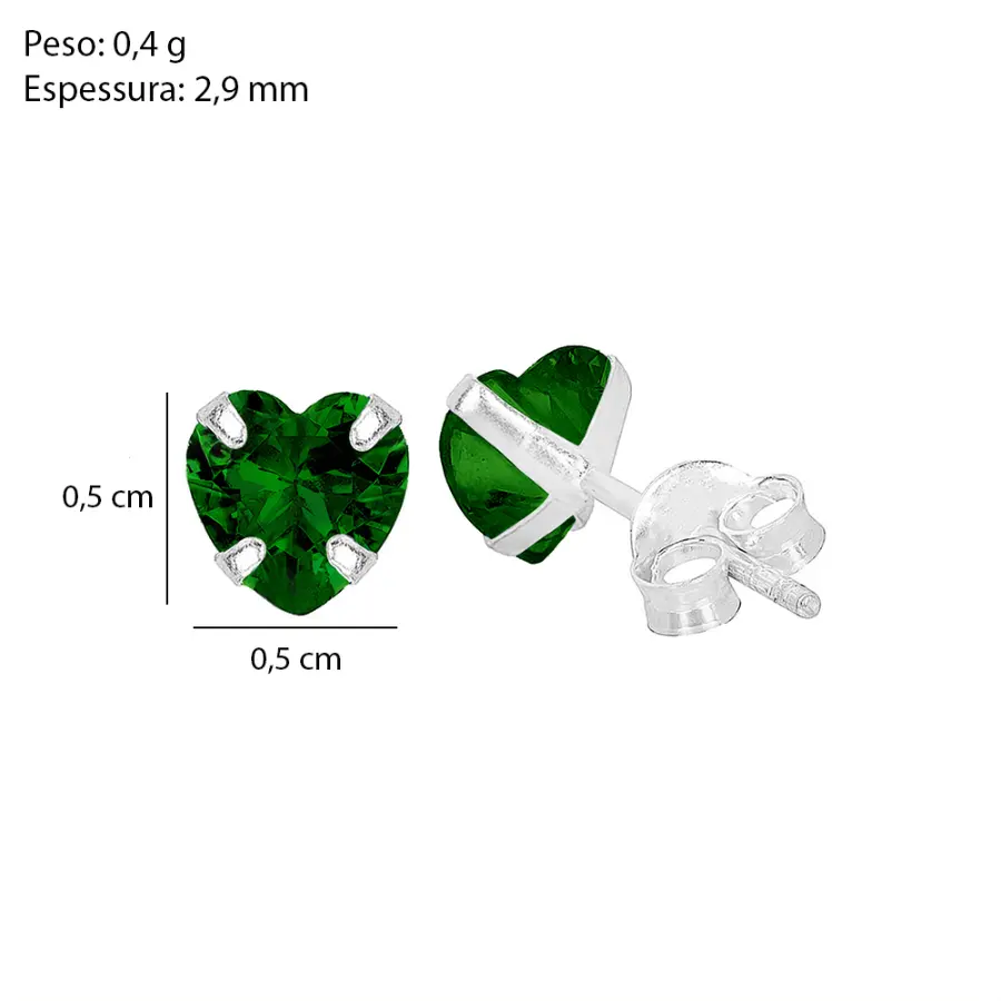 Brinco Prat Zircônia Coração Verde 5x5mm