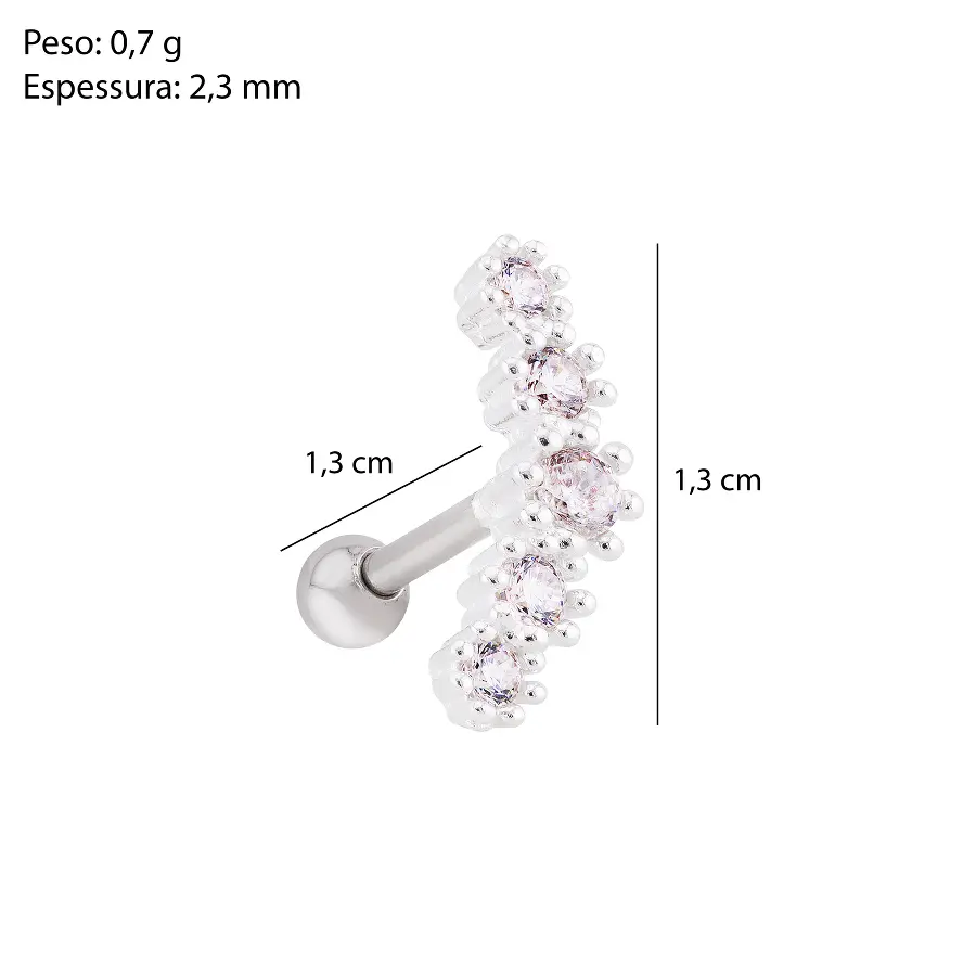 Piercing Prat 5 Zirconias Cristal p/ Low Helix